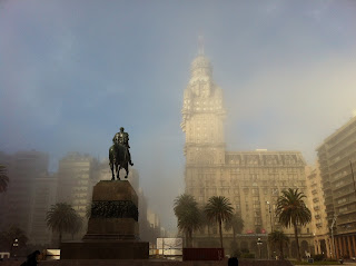 Ziua de ieri a început cu un poliţist care ieşea din perete(le unei case abandonate?) şi a continuat cu vizita la fac (fundaţia de artã contemporanã) un colectiv auto-finanţat de artã şi la muzeele de artã. Între ele dar şi în general, lungi cãlãtorii cu autobuzul acompaniazã şederea la Montevideo ceea ce nu e aşa rãu cãci am vãzut mare parte din oraş. Cel mai bun bus a fost cel de azi care m-a dus de la Cerro (un deal unde era monumentul dispãruţilor) înconjurat de un cartier super sãrac şi cam murdar dar plin de cãţei (cei mai simpatici erau 2 boxeri care aveau tricouri cu buline!) pânã în partea cealaltã a oraşului la Pocitos, o plajã dar şi un cartier cu blocuri mai noi şi parcã din alt film decât portul (centrul vechi) şi centrul cu lume care face jogging şi mânãncã în oraş duminica la prânz.
